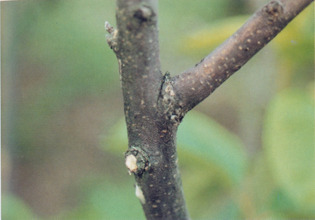 감나무 줄기마름병은 주로 어린 가지에서 발생하는 질병으로, 초기에는 타원형의 퇴색한 형태로 나타나며 나중에는 병반 내부에 균열이 생기면서 흑색의 작은 점이 형성됩니다. 이 병이 진행되면 가지가 마르고 말라 죽을 수 있습니다.