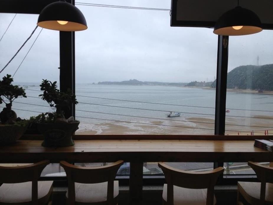 일출과 일몰을 한곳에서 볼 수 있는 왜목마을의 바닷가의 카페는 매력적이다.
