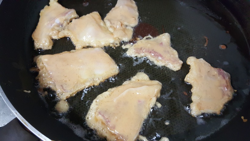 반죽에 콩가루를 조금 넣어주면 고소함이 극대화되고 비린내도 많이 잡힌다.