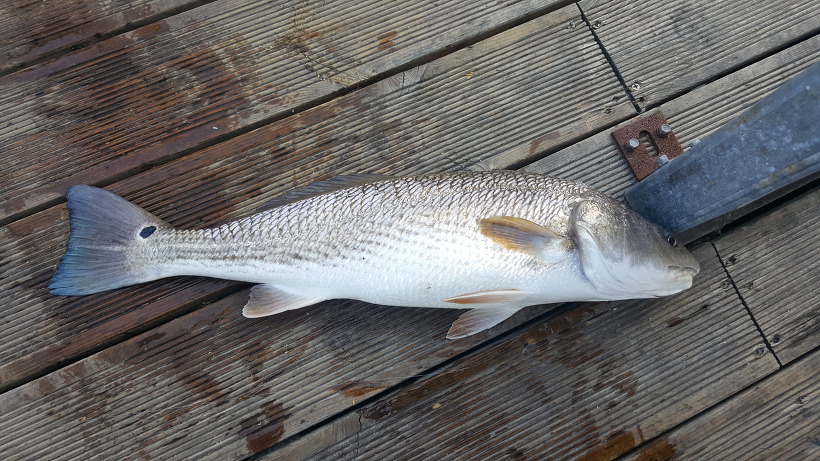 대부분 망둑어 입질이었지만 갑자기 찌가 쭉 빨려 들어가고 초릿대가 휜다.