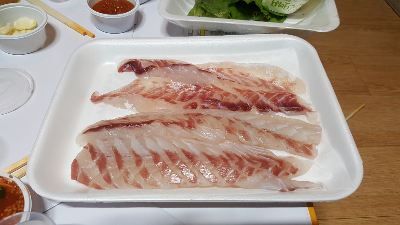 다음날 아침에 9시에 퇴거를 해서 병어를 포를 떠 왔다.