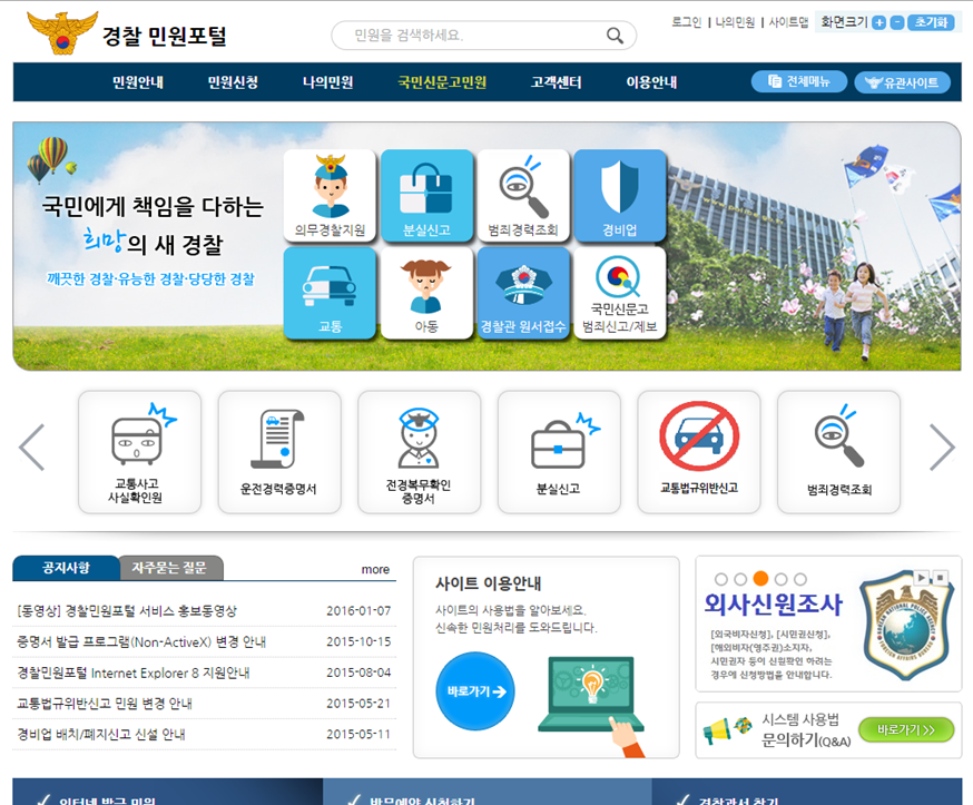 경찰민원포털은 다양한 민원 서비스를 제공하는 온라인 플랫폼입니다. 이곳에서 범죄경력증명서뿐만 아니라 분실신고, 교통 민원, 아동 관련 민원 등 여러 가지 서비스를 이용할 수 있습니다. 이제 더 이상 경찰서를 방문하지 않고도 많은 업무를 인터넷으로 처리할 수 있게 되어 매우 편리합니다.