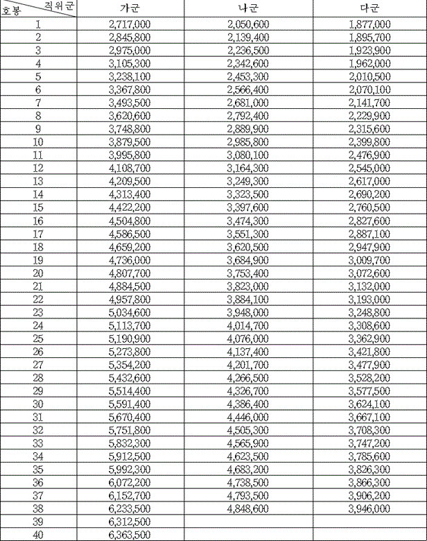 연구직 공무원 및 국가정보원 전문관 봉급표