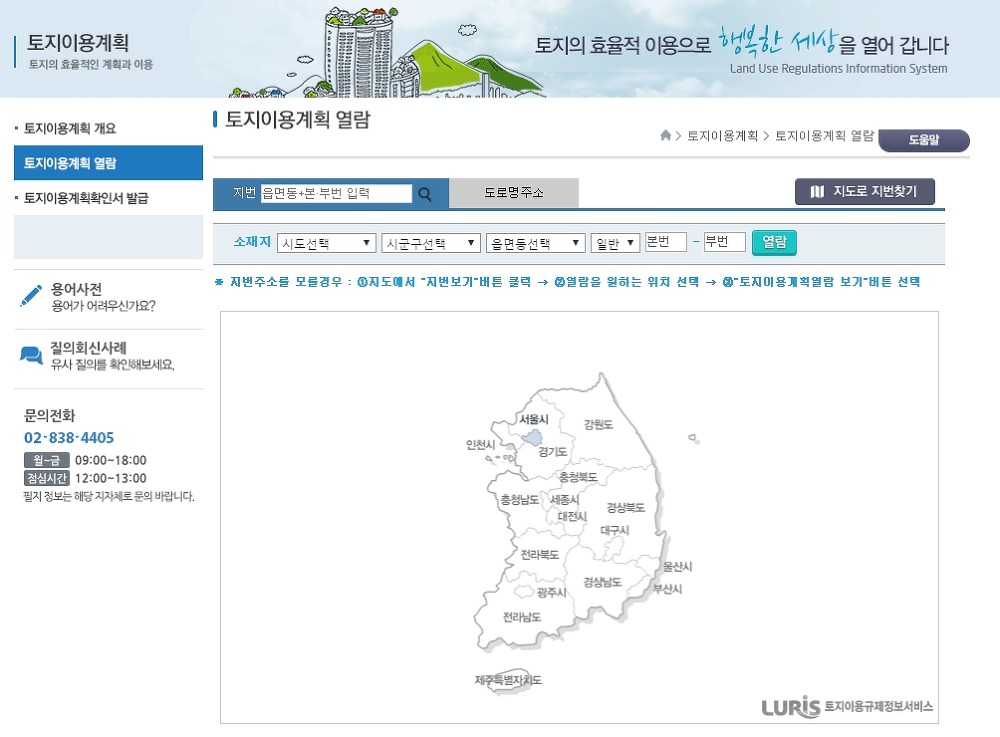 토지이용 규제정보시스템 주소 : http://luris.molit.go.kr/web/index.jsp