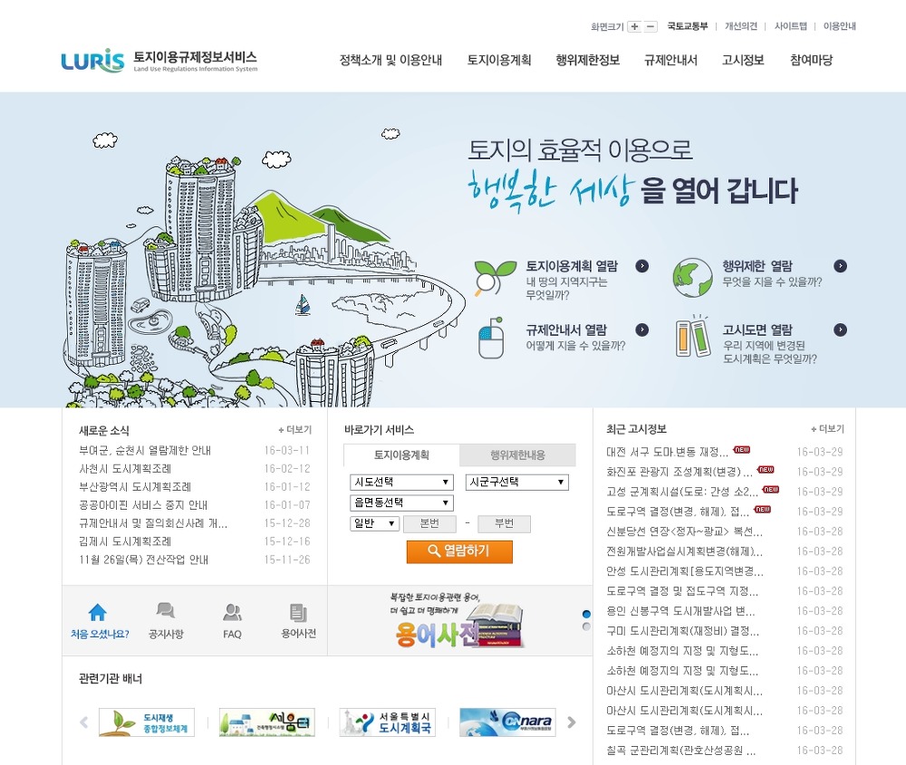토지이용 규제정보시스템 홈페이지