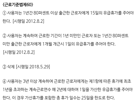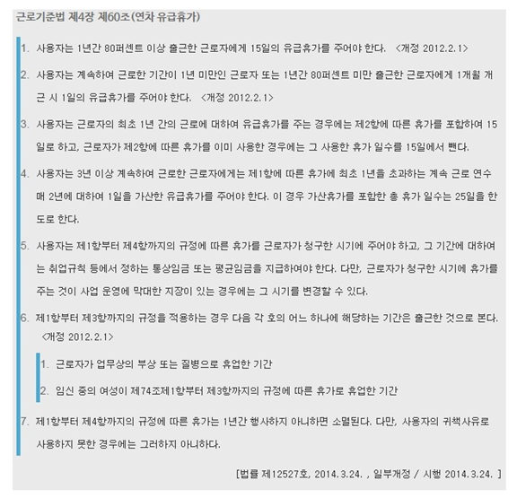근로기준법 60조 연차 유급휴가 규정