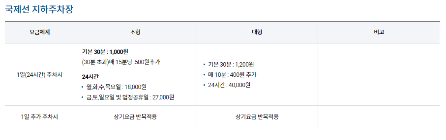 • 종류: 국내선 제1 주차장, 국내선 제2 주차장