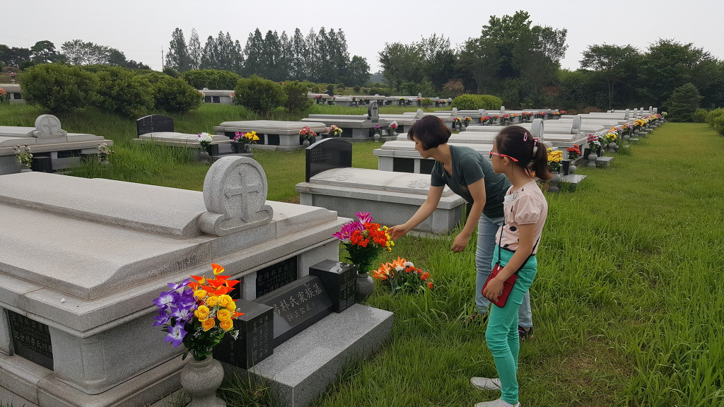 장모님의 기일을 맞아 휴가를 내고 당진의 솔뫼공설묘원을 방문하여, 묘원 앞 가게에서 조화를 구입해 기존의 빛바랜 조화를 새롭게 갈아드렸다.