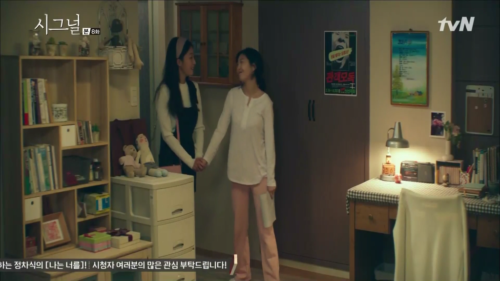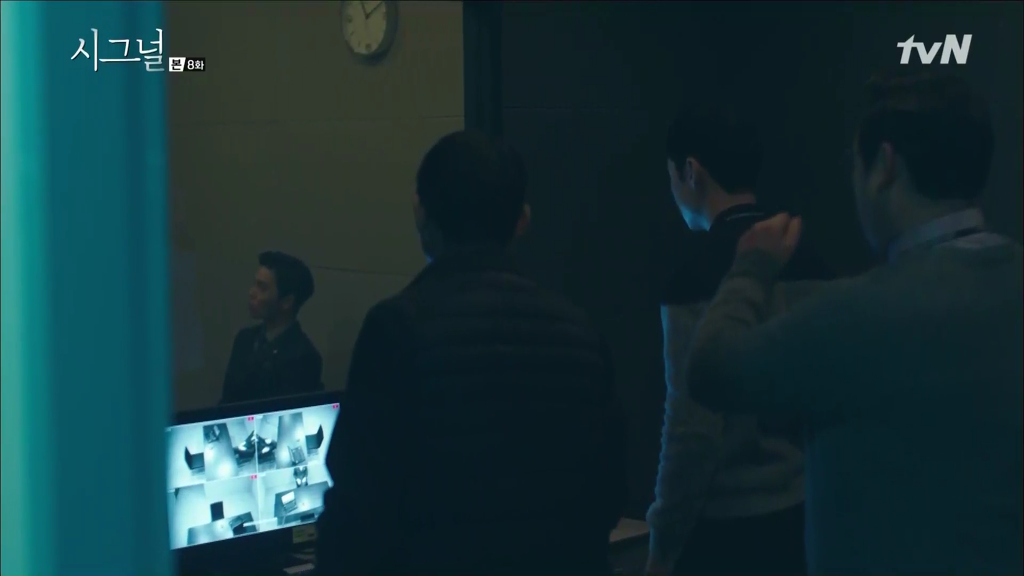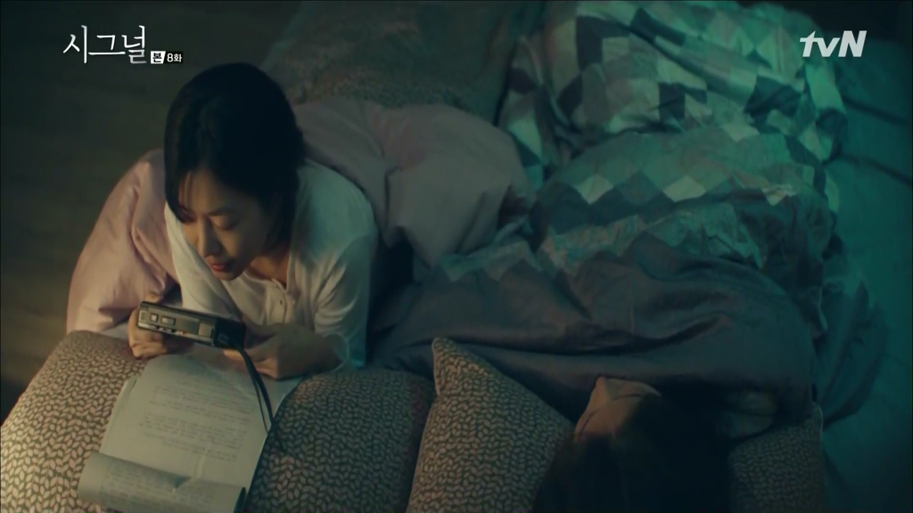 시그널 8회 마지막에 정혜균은 박해영이 자신의 책상 서랍에 감춰 둔 이재한의 무전기로 통신하는 박해영을 발견한다.