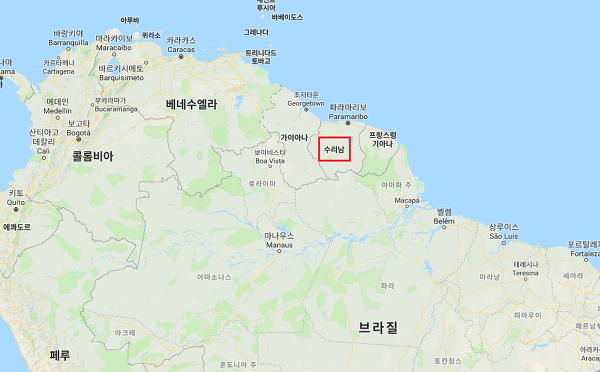 수리남 위치는 남미 북동부다.