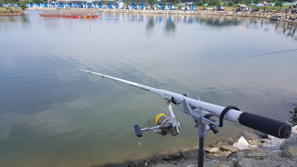 만정바다낚시터의 밤낚시와 머모피 티탄사이버 3D EM가이드 낚시대