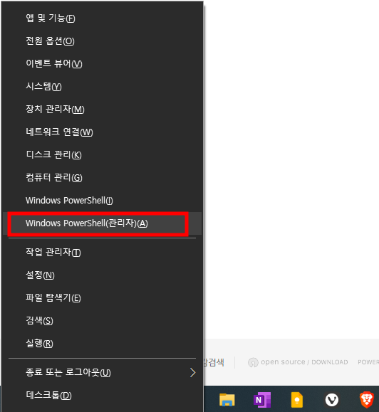 1. 파워셸 실행: 윈도우 키 + X를 눌러 파워 유저 메뉴를 열고, Windows PowerShell (관리자)를 선택합니다.