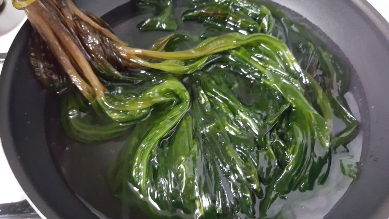 - 끓는 물에 물미역을 1분 정도 데쳐줍니다.