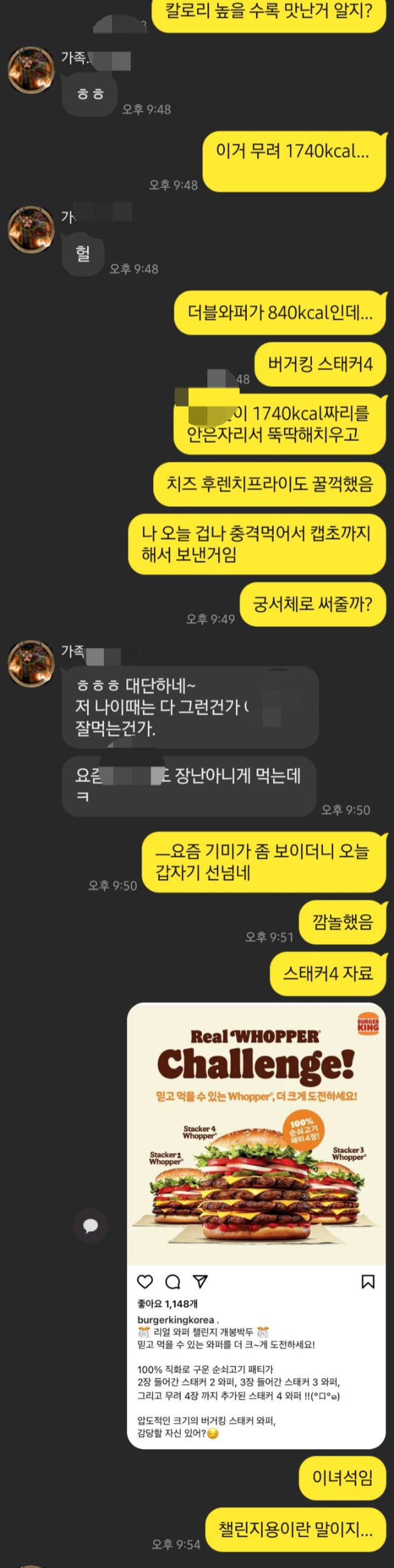 버거킹 스태커4 칼로리는 무려 1740kcal