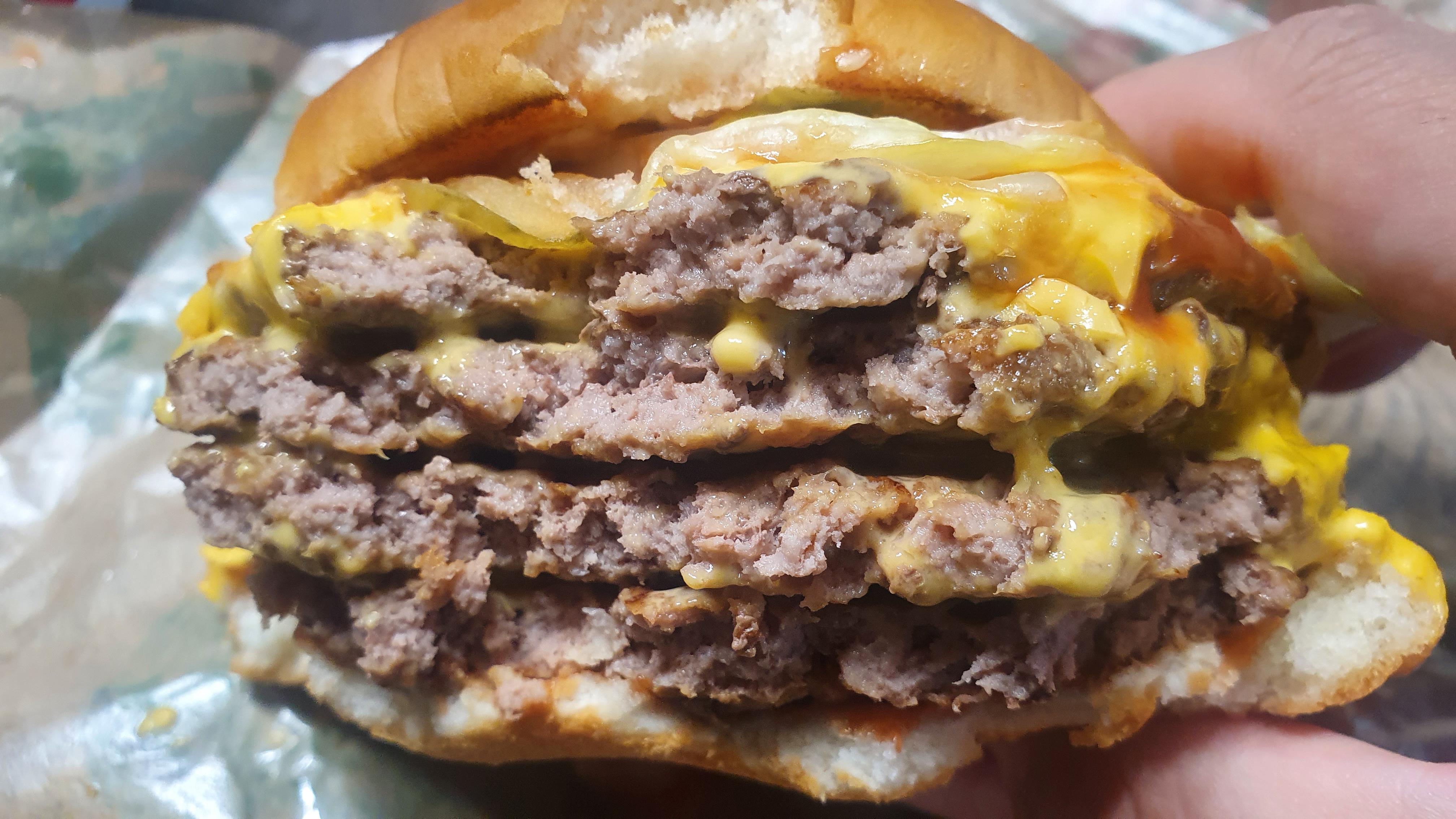 4장의 패티 사이사이 치즈..