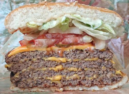 그에 반해서 스태커 4는 패티로 꽉꽉 눌러 담아서 위장 파괴를 넘어서 신체 파괴 버거 인마살상용 햄버거인 듯합니다.
