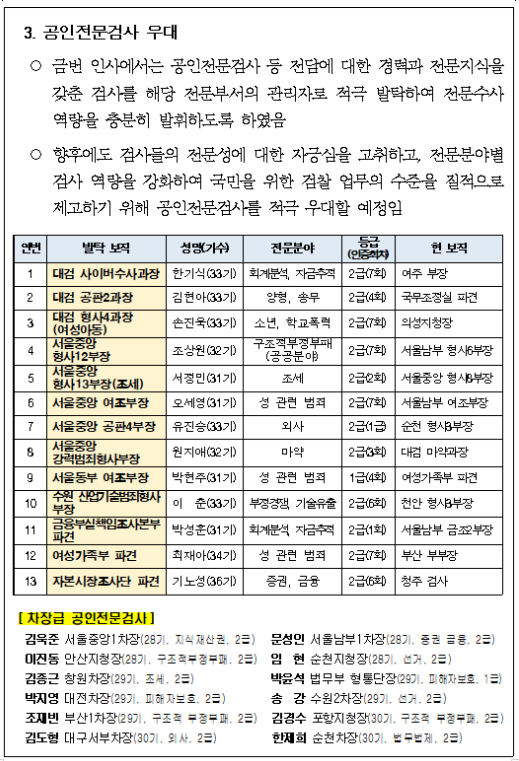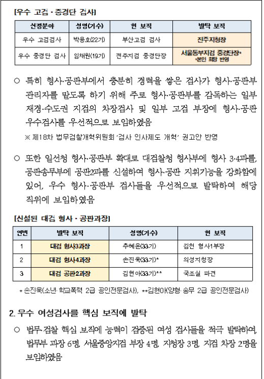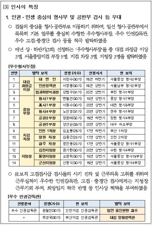 검찰연구관 김종현 정태원(특별감찰팀장) 윤원기 박경섭 채희만 장준호 김태헌 윤수정 장인호 김석훈 이주용 고아라 유관모 최형규 한강일 김은정 이은주 선현숙 정혜승 김진영 임홍석 조현일