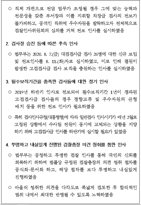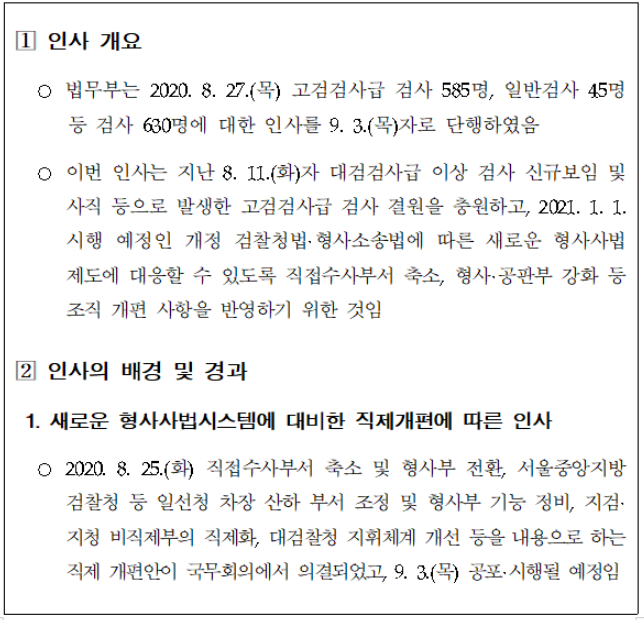 8월 27일 법무부 검찰 중간간부 인사 단행했다.