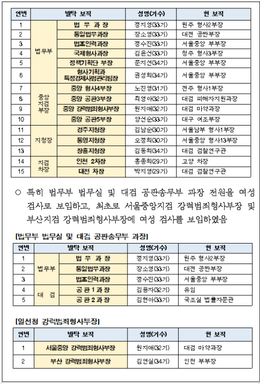 ■법무부 2020 하반기 검찰 인사 명단