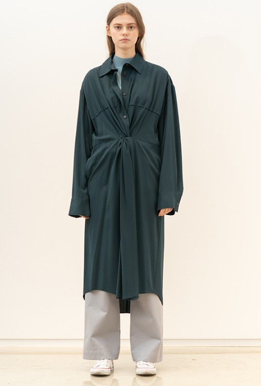 트랜치코트 안에 받쳐 입은 셔츠는 원피스다.