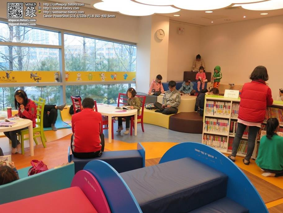 초등학교 4학년 미만의 어린이들은 만화도서관의 아동 열람실을 이용해야 합니다. 아동 열람실은 어린이들을 위해 설계된 특별한 공간으로, 신발을 벗고 입장해야 하며, 바닥에 패드가 깔려 있어 어린이들이 넘어져도 다치지 않도록 배려하고 있습니다.