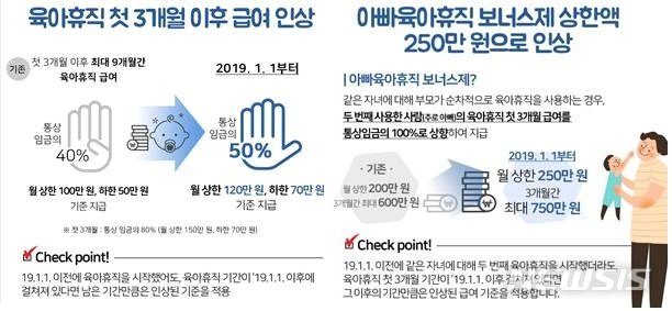 그런데 동반 육아휴직은 사용하지않고 기존처럼 독박육아를 감수하더라도 번갈아가면서 육아휴직을 하면 장점이 육아 기간이 2배로 늘어난다는 것과 두번째 육아휴직자에게 더 많은 육아휴직 급여를 주는 '아빠 육아휴직 보너스'가 존재합니다.