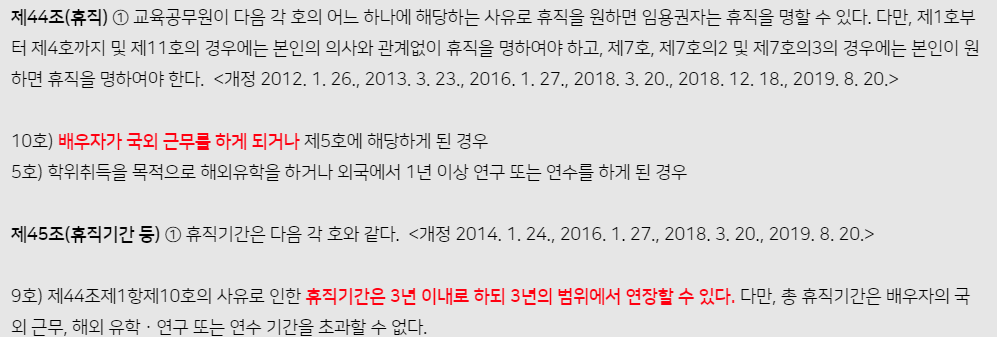 그래서 교육공무원 교사 동반휴직을 선택합니다.