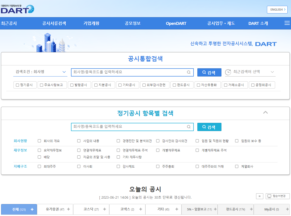 하지만 전자공시시스템을 통해 조회할 수 있습니다.