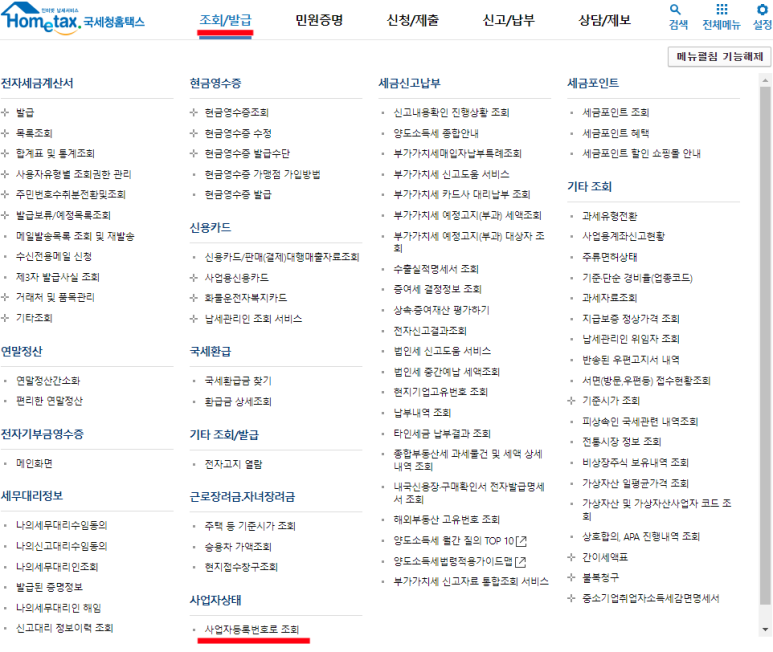 1. 국세청 홈페이지 사업자등록번호 조회