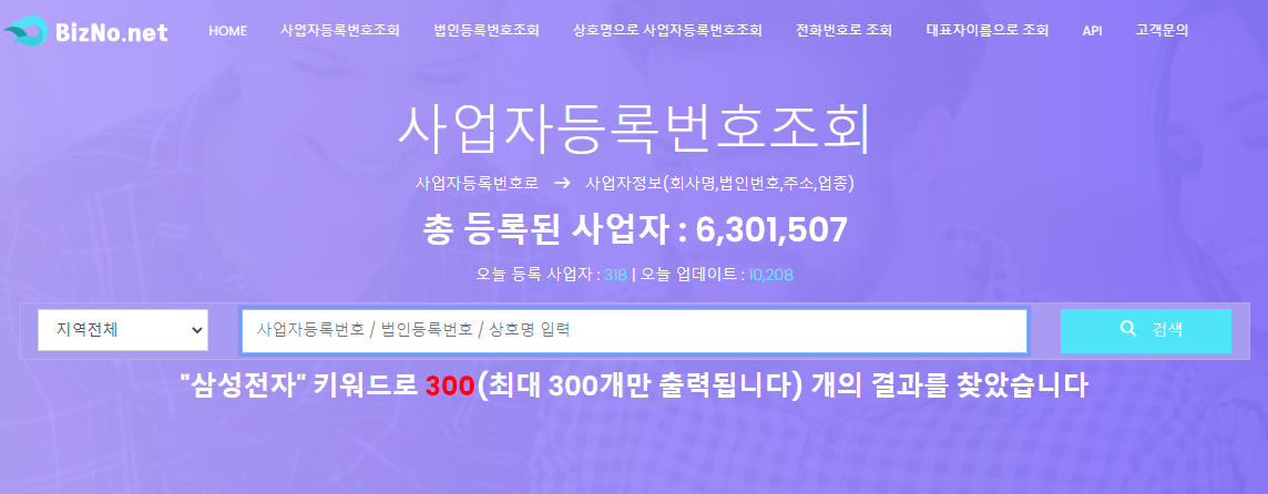 | BizNo.net | 상호로 사업자등록번호 조회 가능 (대리점 주의) |