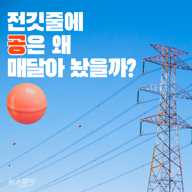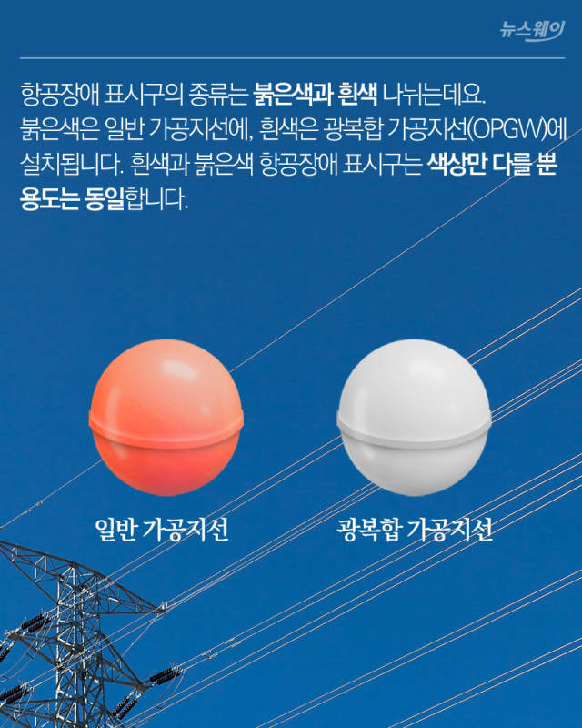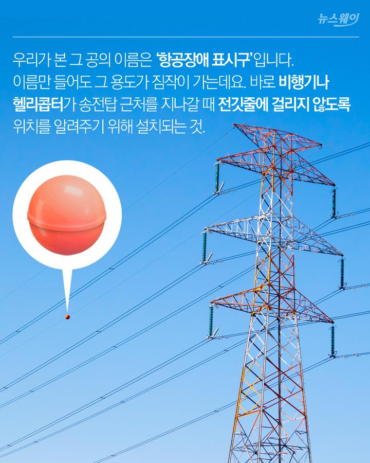 송전탑 고압선 케이블 공 빨간색 주황색 항공장애표시구