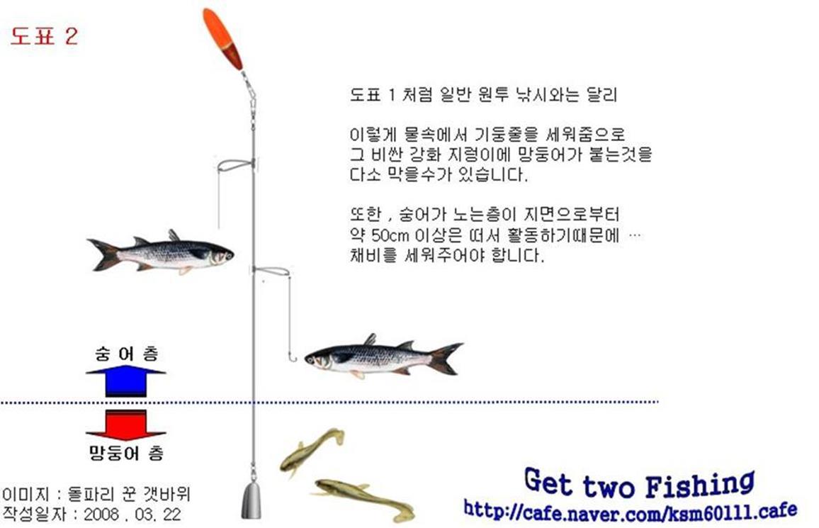 위와 같은 채비를 사용하기 위해서는 추와, 찌가 수직이 되게 맞춰주는게 핵심입니다.
