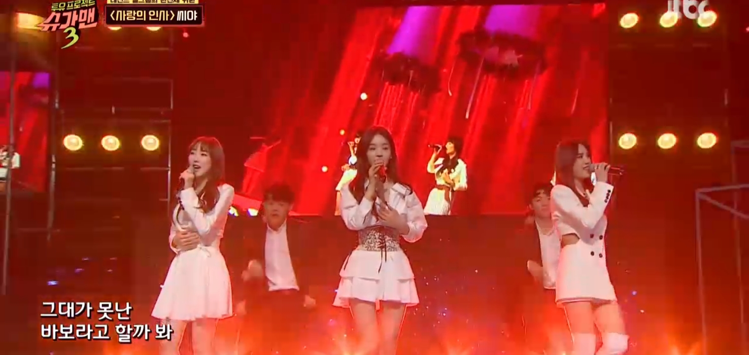 이제 곧 시작하겠지만 지난 주 방송 말미에 보여진 슈가맨 실루엣이 딱 씨야다.