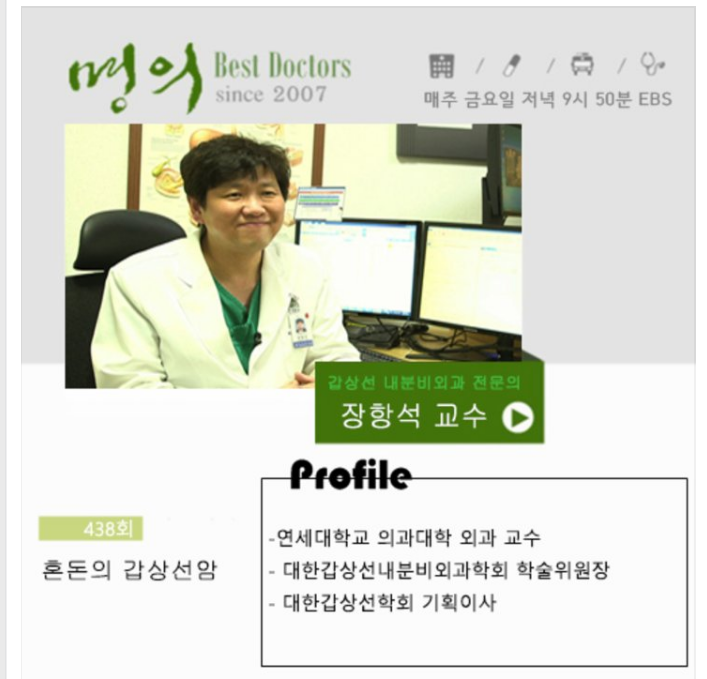 2015. 12. 11. 23:20 ebs 명의 혼돈의 갑상선암 박정수 교수, 장항석 교수 프로필.