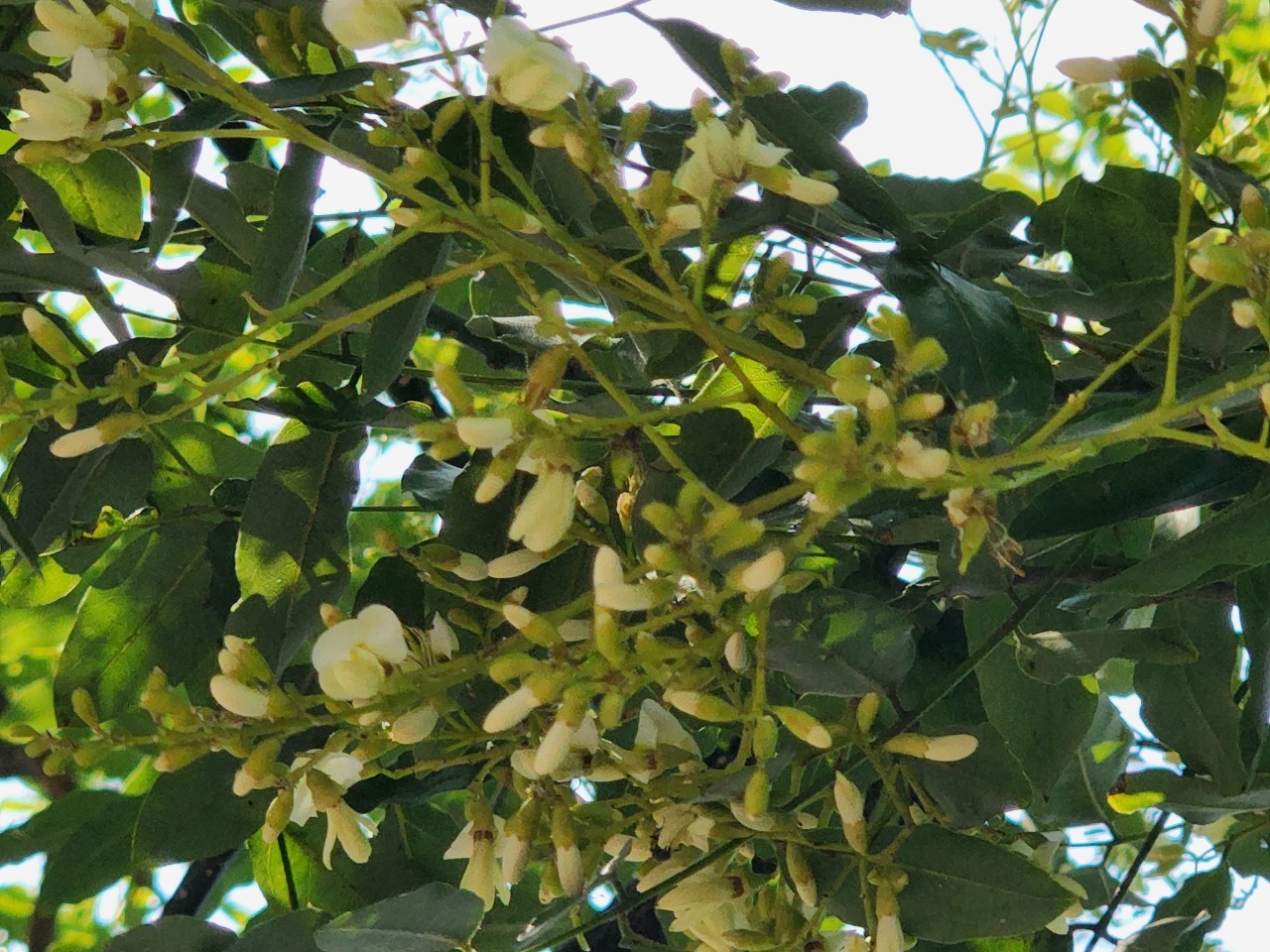 회화나무의 아름다운 꽃은 아카시아 꽃과 생김새만 비슷합니다. 물론 둘 다 콩과 식물이긴 하지요. 아까키사나무라고 보통 부르지만 정식 이름은 아까시나무고 아까시나무 속에 속하는 식물이며, 회화나무는 같은 콩과지만 고삼속에 속하는 나무입니다.