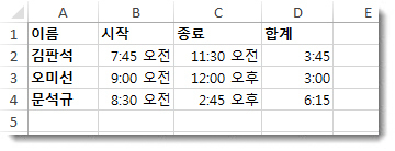 엑셀을 활용한 시간 더하기 및 빼기 방법