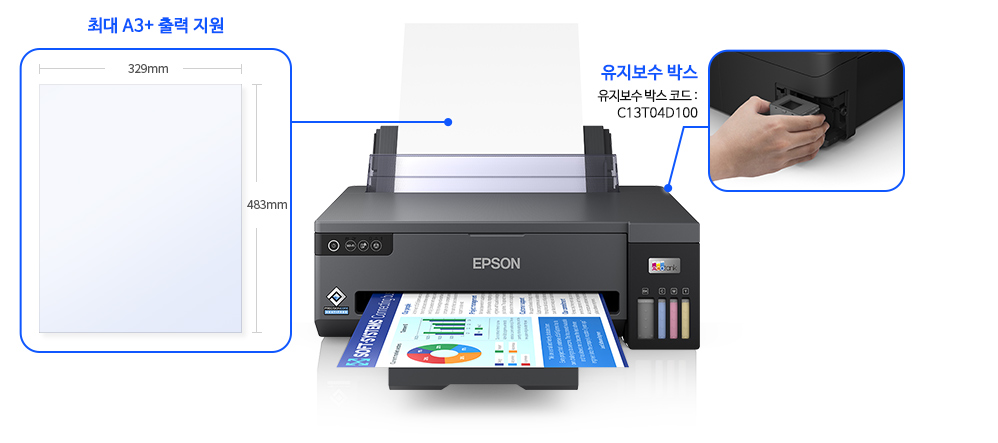엡손 에코탱크 L11050은 사용자 친화적인 앱을 통한 간편한 설치, 빠른 출력 속도, 경제적인 인쇄 비용으로 현대적인 사무 환경에 적합한 프린터입니다. 특히, A3 크기의 문서 출력이 필요한 경우에 높은 효율성을 제공하며, 스마트 기기와의 완벽한 연동으로 사용자의 편의성을 극대화합니다.