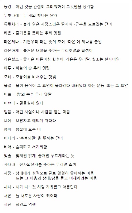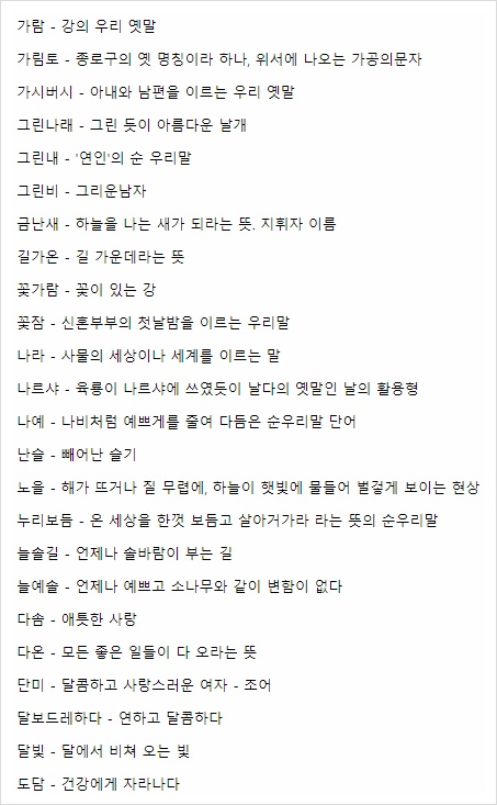 예쁜 순우리말 이름을 찾아봤습니다.