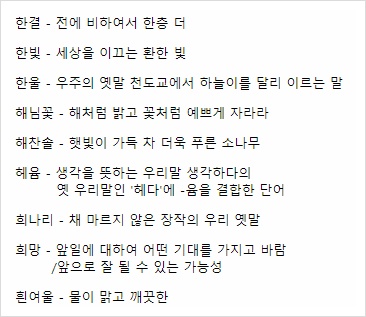 사실 고어라고해서 다 예쁜한글이름이라고 할 수는 없을 것 같아서...