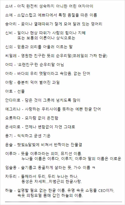 예쁜 순우리말 이름을 찾아봤습니다.