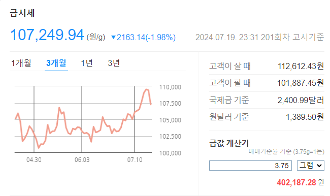 오늘의 금 시세 (2024년 7월 20일 기준)