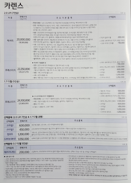 올 뉴 카렌스 2017 aka 더 뉴 카렌스 가격은 2천만 원부터 시작하는군요.