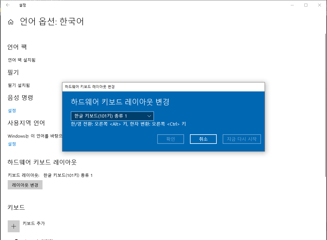 키보드 레이아웃 설정이 잘못되어 있을 경우에도 한영키가 제대로 작동하지 않을 수 있습니다. 이런 경우에는 윈도우 설정에서 키보드 레이아웃을 변경해 주면 됩니다.