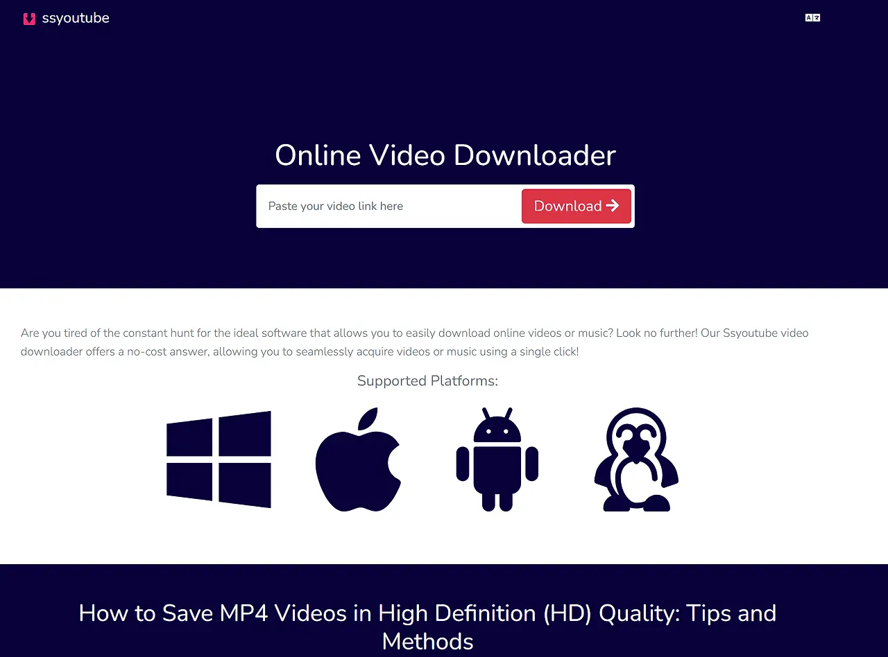 Step 4: ssYouTube 사이트로 이동하게 됩니다. 이 사이트에서는 해당 동영상에 대한 다양한 다운로드 옵션을 확인할 수 있습니다.