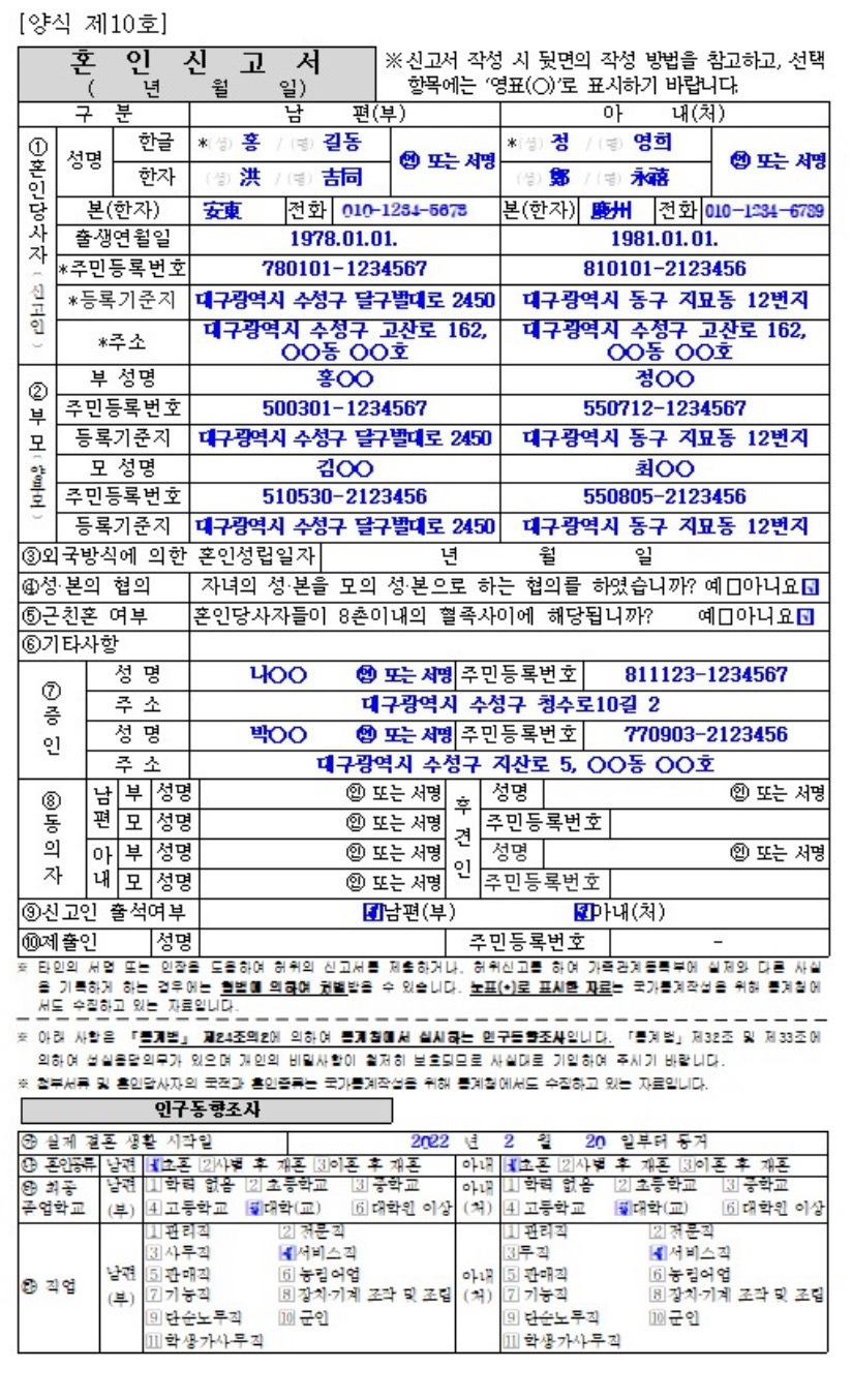 재혼, 혼인신고서 작성방법, 혼인신고 양식, 혼인신고 준비물, 혼인신고 절차, 재혼 혼인신고, 혼인신고 제출처, 혼인신고 처리기간, 혼인신고 증인, 혼인신고 온라인 불가