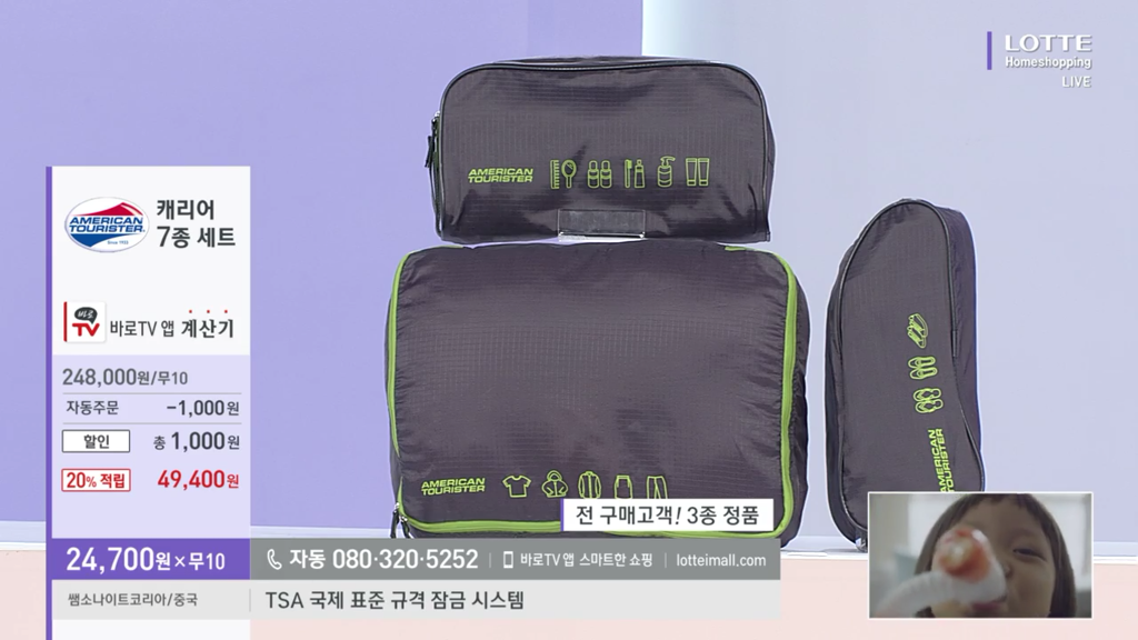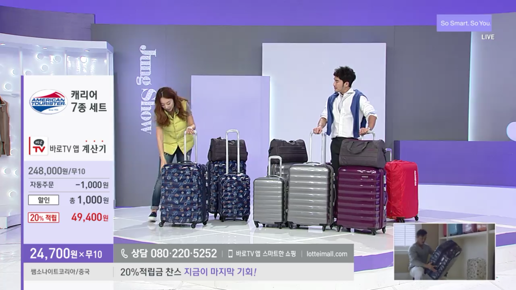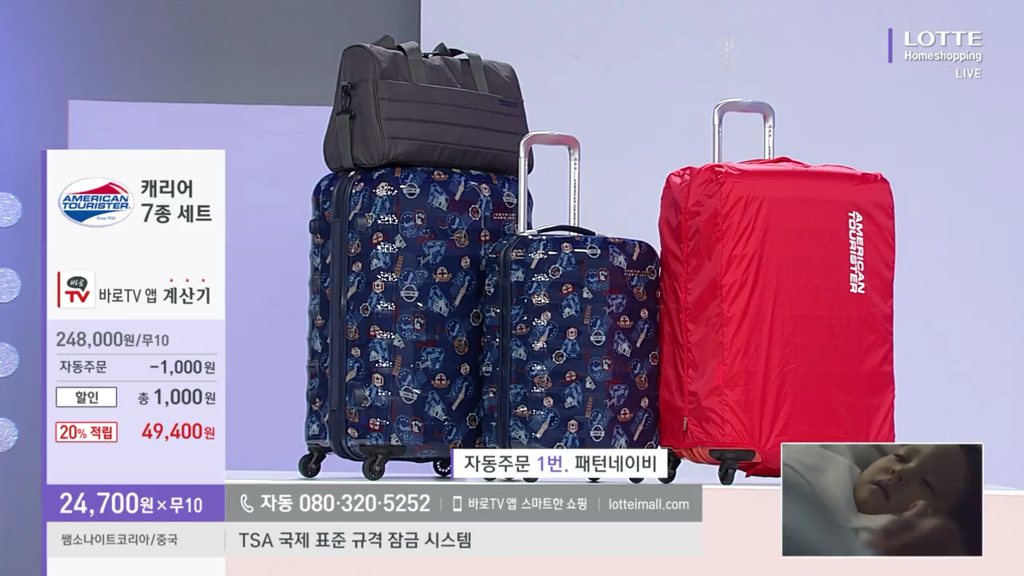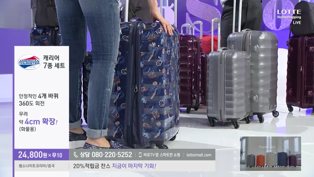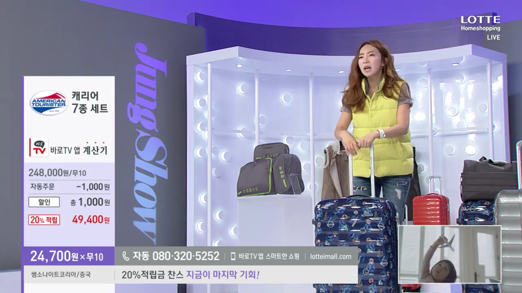 정윤정 쇼호스트 롯데홈쇼핑 정쇼 아메리칸 투어리스트 캐리어 7종세트