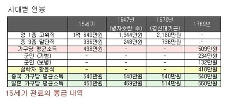 조선시대 관료 월급과 현대 공무원 봉급 비교