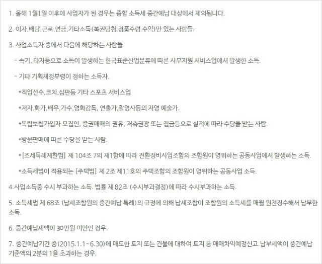 혹은 다음에 해당되는 사람은 종합소득세 중간예납 납부 대상 제외입니다.