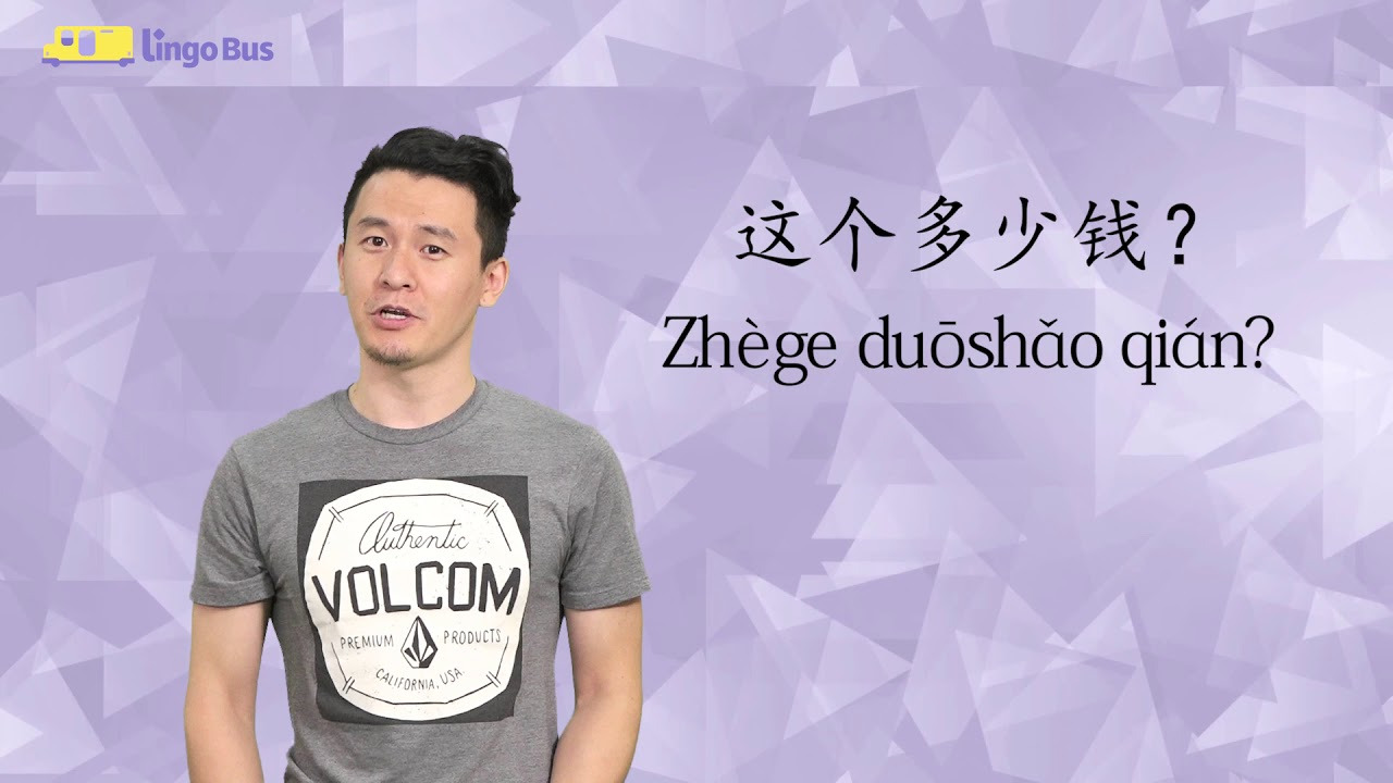 - 这个多少钱? zhège duōshǎo qián? (쩌거 두샤오 치엔?): 이거 얼마입니까?