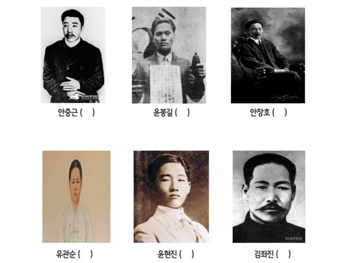 의사로는 윤봉길 의사(상하이 폭탄 투척), 안중근 의사(이토 히로부미 저격), 이봉창 의사(히로히토 수류탄 투척)